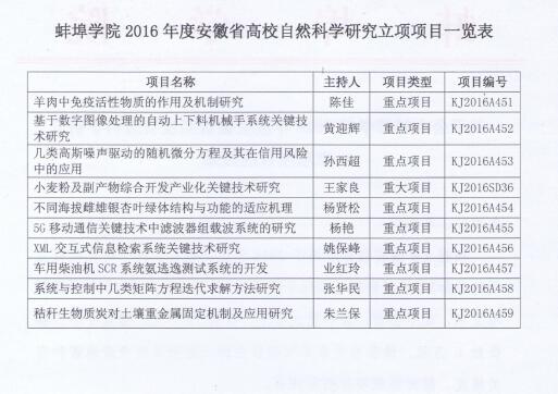 关于公布tyc7111cc太阳成集团2016年度安徽省高校自然科学研究立项项目的通知