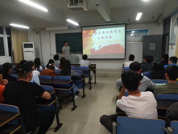 为了切实增强学生的国家安全意识,助力创建文明校园。太阳成集团tyc71112017级电子信息科学与技术专业于2018年4月19日19:00在教学楼B213开展了4.15国家安全教育日主题班会,本次宣传由组织委员舒峰主持,全班同学参加了本次活动。
