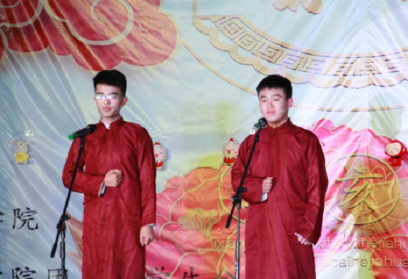 热情的开场舞中拉开了序幕。整场晚会的节目内容流行与古典兼收,温情与火热并举,形式多样,精彩纷呈。中华文化传承不灭,歌曲串烧表演更是嗨翻全场,动感的音乐引得台下尖叫连连。让观众心旷神恰,沉醉其中。而令人捧腹大笑的小品表演《笑傲江湖》、《男大当婚》更是让观众乐不可支,幽默风趣的台词,滑稽搞笑的动作引得观众们掌声连连,欢笑不断。接下来,魅力四射,文雅的古典舞蹈《寄明月》和引爆全场的舞蹈串烧表演的惊艳登场,则跳出了青春的舞步,跳出了生命的色彩,跳出了专属于他们的靓丽风姿,博得现场掌声雷动,欢呼声喝彩声不绝如缕。朗诵《威武中国》,心理剧《心声》,二胡表演《二胡之心》等节目都让观众觉得眼前一亮当然,一场完美的晚会怎么可以少得了诙谐幽默的相声表演?两个帅哥的幽默话语引得掌声与欢呼声不绝于耳,台上台下瞬间成了一片欢乐的海洋。身强体健的武协演员们为大家带来的舞旗表演《风云聚,舞天下》更是将晚会推向了另外一个高潮,潇洒的身姿,刚健的动作,将学子的风采表现的淋漓尽致。美好的时光总是匆匆而过,晚会最终在昂扬的旋律中完美落幕。