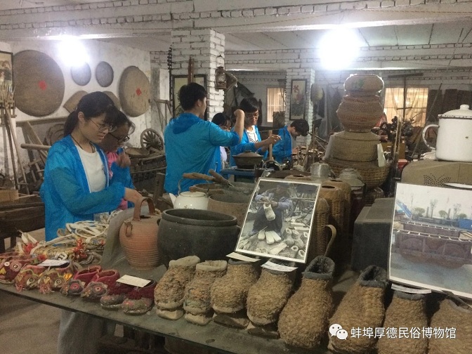 活动期间,徽州文化传承团来到了蚌埠厚德民俗博物馆,并对馆内藏品进行了浏览学习。据了解,蚌埠厚德民俗博物馆是一个永久性全免费参观的民办民俗博物馆,馆藏物品一万多件,主要呈现农具、木工用具、量器、车辆、渔具等。在对民俗博物馆馆主的采访中获悉,博物馆建于馆主青年时期,旨在收藏淮河流域各个时期的主要农耕农具以及各种民俗老物件,目的就是保护农耕民俗文化,让更多的人去了解和认识农耕民俗文化。