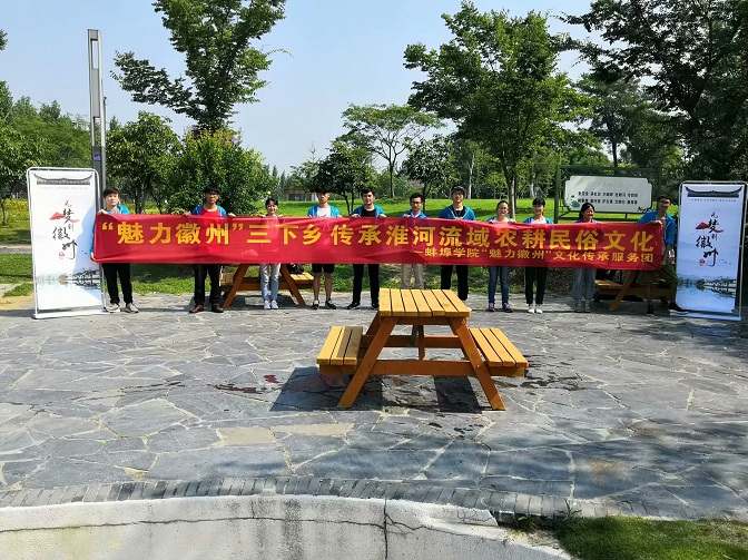 接着徽州文化传承团队开展了宣传工作。在龙子湖公园,队员们分成若干小组对公园里健身的市民进行了农耕民俗文化宣传。宣传主题为“魅力徽州,文化传承”,主要让市民们观看了淮河流域各个时期的主要农耕农具以及各种民俗老物件、关于农耕民俗文化的照片。