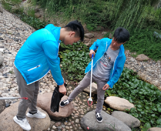 当地小区负责人也非常热情地为大家分发了帽子、垃圾袋、捡垃圾的手杆等,并说明了一些注意事项。之后大家分组分区域开始了垃圾清理工作,每个人都非常仔细的清理道路上的各种垃圾,有的需要反复好几次才能够拣起来,还有类似香烟头的细小物体捡起来也十分麻烦,但是大家通通都不放过,要做就要彻底做好。在此过程中大家互相认识并且慢慢变得熟悉起来了。回头看见走过去的路都因为大家的努力而变得干净,内心甚是喜悦。