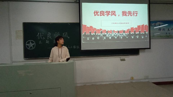 活动中,团支部书记先以PPT的形式帮助同学们了解到学风建设的重要性及其意义。强调“良好的学风是一种潜移默化的巨大而无形的精神,时时刻刻都在对学生产生着强烈的熏陶和感染”,激励学生奋发努力。所以在学风建设中,要调动大家学习、生活的积极性,促进班级形成良好的学习、生活氛围。然后,团支部书记提到了关于学风建设的两点内容。第一,要规划美好未来。初步了解自己专业的未来发展前景,结合自身条件作出对比,制定符合自身未来职业规划的方案,拥有自身的目标;第二,要树立良好的班级形象。学风建设的主体是学生,作为班级的一员,应以维护班级形象为荣,大家互相帮助,共同进步,浓厚班级氛围,让班级形象绽放魅力。