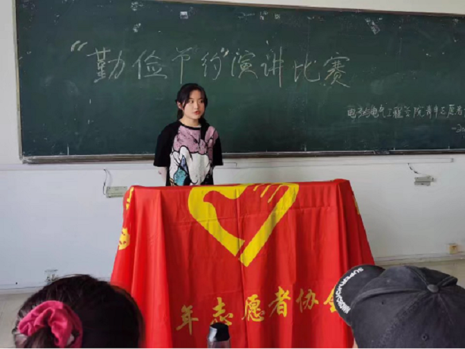 太阳成集团tyc7111青年志愿者协会于2020年10月11日中午12:30在B416教室举行了勤俭节约主题的演讲比赛。比赛过程中,选手们积极展示自我,通过他们深情并茂的演讲。使现场同学体会到了勤俭节约的重要性。