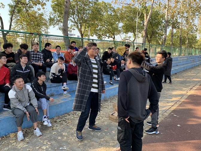 2020年11月12日下午,19级电气工程及其自动化团支部于南操场举行了以“放松心情,放飞梦想”为主题的团建活动。此次活动主要有:欢迎仪式、寝室美化评比、你来比我来猜和合作踩气球四个环节。活动伊始,开展了转专业同学的欢迎仪式,10位新同学在温和的阳光下,面带微笑的做着自我介绍,其他同学则用着热烈的掌声欢迎他们的加入;第二环节进行寝室美化评比,各寝室长对比着照片,为每个寝室的整洁程度打出来自己的分数,最终11318寝室以平均分8.2的高分成为19电气团支部最整洁寝室;紧接着,在同学们响亮的欢呼声中,“你来比我来猜”和“合作踩气球”两个环节依次展开,大家通过抽签的方式两两组队,本着友谊第一的原则进行激烈地PK,现场一片欢声笑语;最后,此次活动在大家的合照中圆满结束!