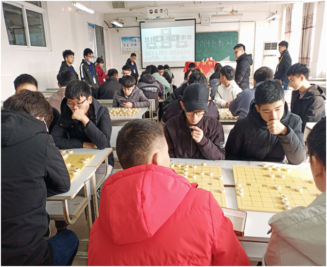 为了丰富和活跃社团文化生活,提高本社学生的综合素质,11月29号由棋弈文化社承办的“棋逢对手”社团成员内部象棋友谊赛在B507举行。