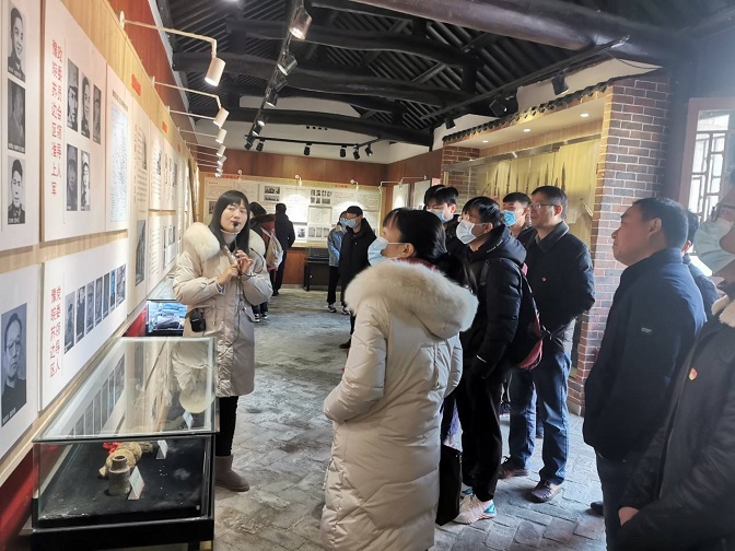 为了深入学习贯彻党的十九届五中全会精神,进一步增强党员的先锋模范意识,传承红色革命精神, 12月17日,太阳成集团tyc7111党总支组织教师党员和部分学生党员前往怀远龙亢新四军淮上行署旧址进行参观学习。
