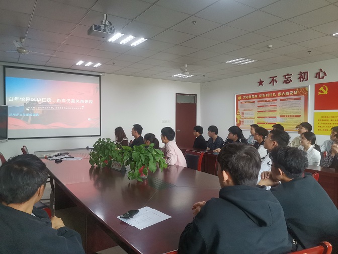 随后,全体党员齐声合唱《我和我的祖国》,热情澎湃的歌声里,洋溢着党员同志们的青春热情。刘斯文总结道:“百年恰是风华正茂,百年仍需风雨兼程”,并表示全体党员要不忘初心、牢记使命,为实现第二个百年奋斗目标、实现中华民族伟大复兴的中国梦而奋斗。(撰稿:张楚楚)