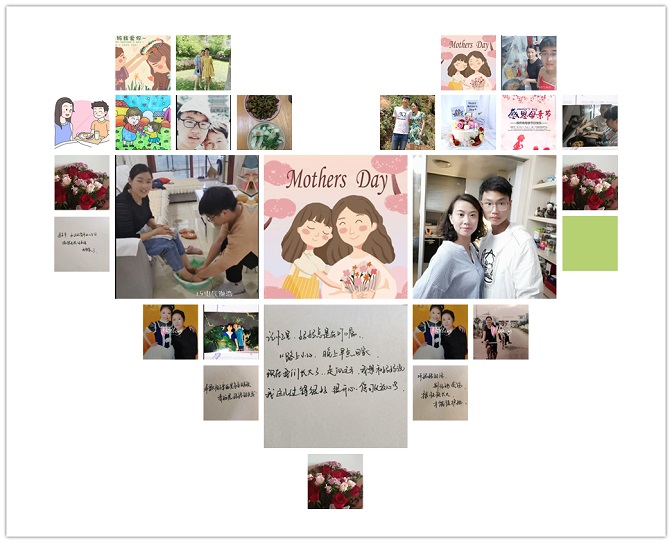 通过前期的线上和线下的宣传,同学们参加活动热情高涨,纷纷通过线上投稿,将自己在母亲节送给母亲的“礼物”以电子版的形式向我们分享。有的同学通过制作海报和电子相册来向母亲表示祝福,有的同学通过送花和送礼物表达感恩,有同学通过一首小诗来诉说对母亲的思念。最后,院学生会将同学们的作品做成照片墙,传递同学们的心意,向全天下的母亲表达节日的祝福!妈妈,这世界上最最好听的名字!世间没有一种爱能超越您的爱,没有一种花能比您美丽,没有一种面容比您慈祥。