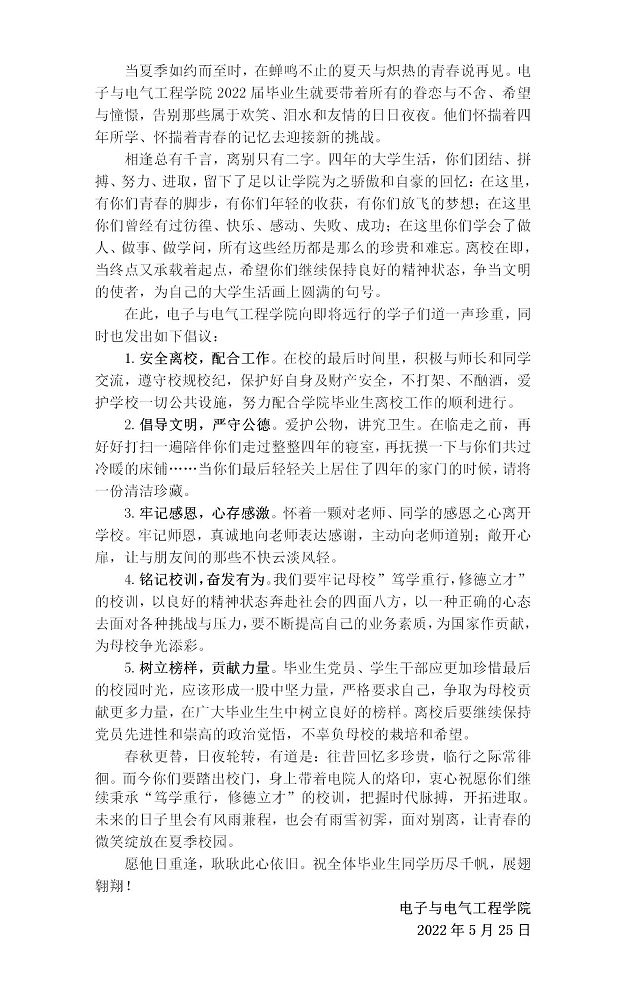 太阳成集团tyc71112022届毕业生文明离校倡议书