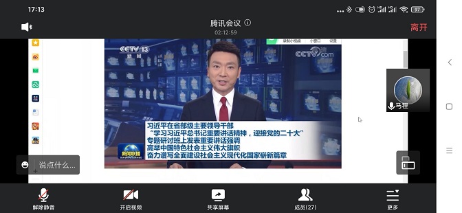 随后,全体党员通过线上视频的方式集中学习了习近平总书记在省部级主要领导干部“学习习近平总书记重要讲话精神,迎接党的二十大”专题研讨班上发表的重要讲话。