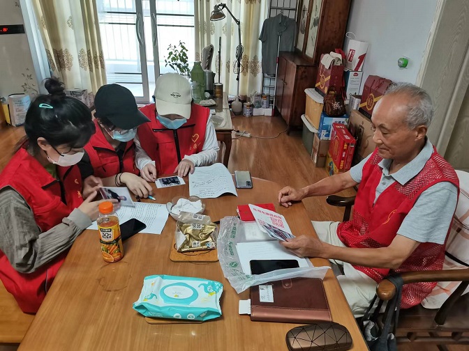 接着,寰宇红色专项实践团来到老党员何运川爷爷家中进行采访,何爷爷是金寨县梅山镇的老党员、老干部,一直在为金寨县贡献着自己的力量,已经82岁高龄的何爷爷,经常在红军广场做志愿者,与来访者交流思想。何爷爷也是梅山镇新时代红色宣讲员,在社区发挥余热,做些力所能及的事情。实践团在与何爷爷的交流中,听爷爷讲述中国共产党成立的艰辛历程,重温中国共产党的峥嵘岁月,感受到革命前辈们崇高的革命理想和坚定的革命意志。何爷爷对实践团成员说道:“在共产党的领导下,全国人民团结在一起,我们有统一的方向,就无往而不胜。我们有信心实现第二个百年奋斗目标,宏伟蓝图需要靠你们这一代来绘就。”何爷爷不忘党的恩情的精神和谆谆教诲让实践团成员牢记在心中,结束与何爷爷的访谈之后,实践团来到金寨县梅山镇潭湾社区了解金寨发展情况,学习金寨县脱贫攻坚的成功之路,体会金寨县万众一心齐攻坚的决心。