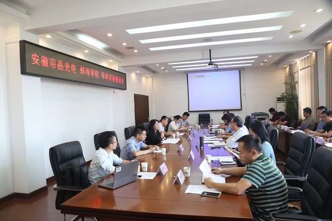 9月26日下午,我校与安徽帝晶光电科技有限公司在行政楼四楼第二会议室召开省级高峰培育学科共建座谈会,会议由党委副书记、院长丁明主持。