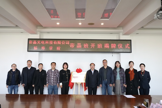 座谈结束后,在与会人员的见证下,校企双方领导陈国龙、赵颖共同为“帝晶班”联合培养基地揭牌。