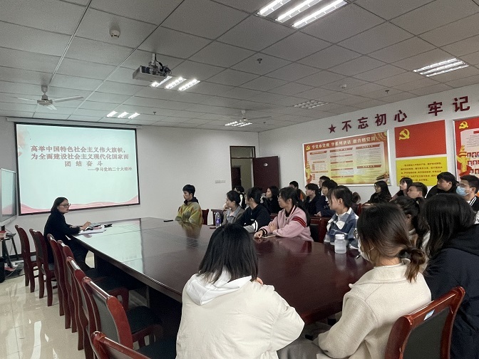 11月23日中午12点30分,太阳成集团tyc7111“学习党的二十大精神”党课活动在F楼1114会议室正式开始。本次党课由电子信息专业支部书记刘斯文带领支部学生党员专题学习党的二十大精神。