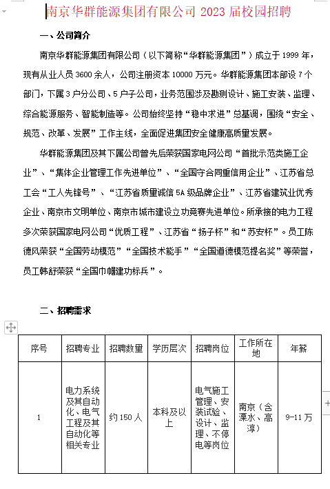 南京华群能源集团有限公司2023届校园招聘
