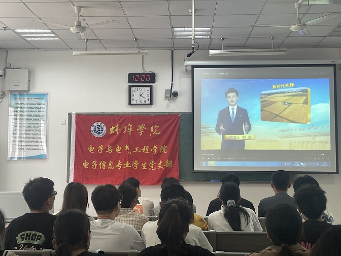 2023年5月23日中午,电子信息专业学生党支部组织支部全体党员学习收看由中组部党员教育中心主办的《共产党员》党建电视栏目播出的“全国劳动模范”、“中国好人”、“感动中国2022年度人物”、“种粮大户”、太和县国家农业科技创新基地党支部书记徐淙祥的典型事迹电视专题片。专题片以徐淙祥同志收到习近平总书记的复信为切入点,讲述了他多年来坚定科学种粮的信心,屡屡创下小麦、玉米、大豆的安徽单产纪录,其领衔或参与研发的农业新技术、新品种,成为当地及周边区域农业增效、农民增收“法宝”的典型事迹。