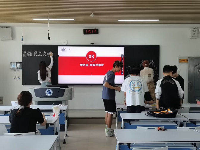 主题班会以宿舍小家为切入点,通过一组漫画“友谊的小船说翻就翻”引入正题。在“爱之微-畅叙宿舍情”板块,通过小品演绎宿舍小家的故事,让同学们懂得营造和谐友爱的宿舍关系正是当代大学生践行社会主义核心价值观的最直观体现;在“爱之广-社会我担当”板块,同学们观看视频感受到身边友善无处不在,“省吾身”活动中,同学们围绕问题对疫情中个人成长、社会热点问题谈感悟,李芹影结合时事讲述蚌埠、淄博两座城火出圈的深层次原因,阐述爱的真谛;在“爱之宏-共筑中国梦”板块,通过卡片寄语的方式,引导学生思考如何通过构建和谐的宿舍关系,践行社会主义核心价值观。班会分三个板块层层递进,引导学生建和谐小家、怀家国大爱、立报国之志。整个班会氛围温馨和谐,同学们参与热情高涨。