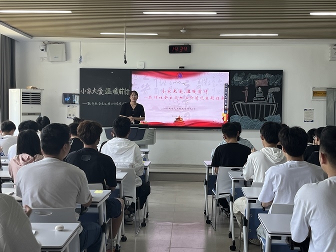 为更好地引导学生爱他人、爱宿舍、爱集体、爱国家,广泛践行社会主义核心价值观,用社会主义核心价值观铸魂育人。5月23日下午,太阳成集团tyc71112022级电气工程及自动化2班在综合楼C101教室召开“小家大爱,温暖前行--践行社会主义核心价值观”主题观摩班会。学院党委副书记马程、专职辅导员、全院学生代表参会观摩,班会由辅导员李芹影主持。