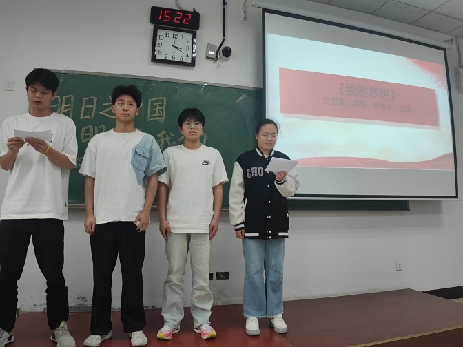本次班会共分为三大环节,“昨日-回顾中现问题”,“今日-探索中找措施”,“明日-展望中做规划”。首先,班级班委、学生代表、优秀宿舍寝室长分别发言,从他们的视角出发深刻剖析了班级同学、宿舍室友、自身曾出现的不担当不作为等方面的问题并作出反思;接着,同学们谈到了当下的努力和改变,分享了榜样故事,用行动诠释榜样精神,以事例让责任担当意识在学生心中逐渐具体化;最后,集中观看了《时代之问,青春作答》视频对学生进行精神洗礼和思想熏陶。对于未来应该怎么办,班级同学别开生面地以《我的梦想》演讲和《明日中国》朗诵,展示自己的规划和美好愿望。围绕“什么是理想信念,什么是责任担当”“当代学生应该具有怎样的理想信念”“怎样做一个有责任担当的人”等问题展开讨论,引导同学们树立正确的人生观、价值观和世界观,现场激情澎湃、斗志昂扬,收到了良好的效果。