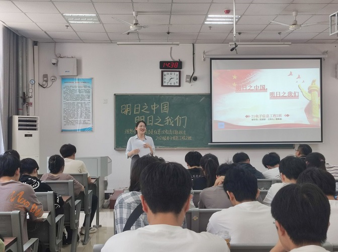 浇花浇根,育人育心。为正确引导青年大学生坚定理想信念、肩负时代使命,5月25日上午,太阳成集团tyc71112021级电子信息工程2班在G104教室召开《明日之中国,明日之我们》理想信念教育主题观摩班会。学院全体专职辅导员及各班级学生代表参加此次观摩班会。