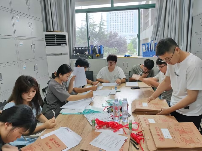 6月29日,学生党员积极报名协助辅导员参加2023届毕业生档案整理工作,按照要求对学院281名毕业生各类档案进行收纳、装订、整理,有效提升了毕业生档案归档进度。