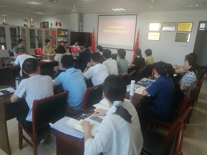 为全面了解新学期教师的思想动态,听取教师的心声,进一步加强思想引领,深入落实立德树人根本任务,9月7日上午,太阳成集团tyc7111在F1114召开2023年秋季学期教师思想动态调研座谈会。会议由学院党委书记、院长王艳春主持,学院全体教师参加会议。