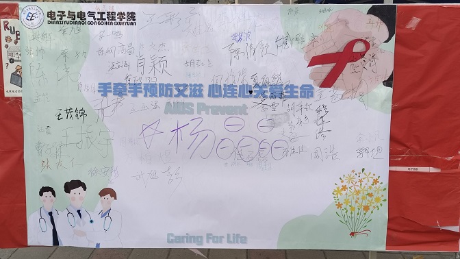 在为期一天的活动中,志愿者们早早来到活动现场,布置好展板、防艾横幅与学院旗帜,对来往学生耐心宣讲艾滋病防控知识,呼吁大家增强防范意识,活动得到同学们的积极响应和支持,纷纷在展板上签名,表达自己对防艾工作的支持和决心。