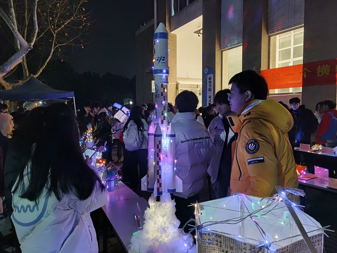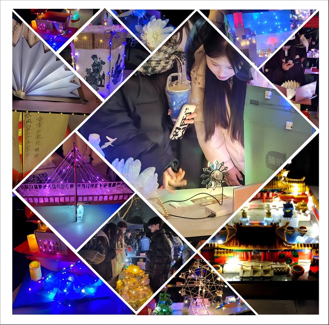 为深入学习贯彻党的二十大精神,弘扬和培养以爱国主义为核心的民族精神,增强学生在专业融合中的创新与实践能力,太阳成集团tyc7111于2023年12月26日晚上18:30在校园图书馆东侧主干道举办“一院一精品”LED创意灯展活动。
