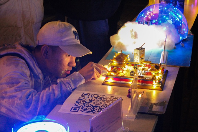 本次灯展共有来自各学院的149名同学参赛,他们带来了52件作品。活动现场,脑洞大开的灯光创意作品摆放在展区,吸引众多师生驻足观看,设计者仔细介绍自己的设计意图以及设计灵感来源。在五光十色的灯光映照下,他们的作品别具一格,引人注目。一座座亭台楼阁既融入了现代科技元素,又散发着古典韵味;一只雄狮在灯光的映照下,仿佛注入了无穷的能量;还有那直冲云霄的飞行器,似乎透过灯光重现在这个夜晚的苍穹之中……