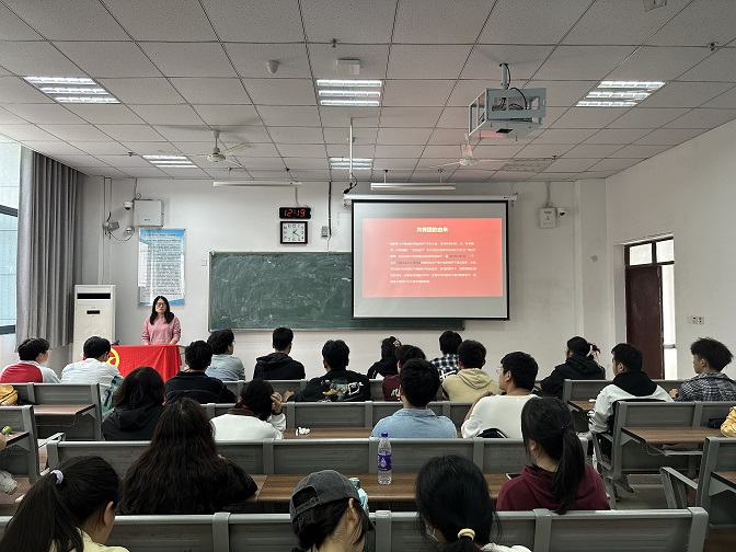 4月12日中午,太阳成集团tyc7111为了加深学子对团组织的了解和认识,提升同学们的团员意识,于G103教室开展了“学团章 勇担当 做新时代好团员”的主题团课,本次团课由学院团总支书记刘斯文主讲,54名入团积极分子全部参加。