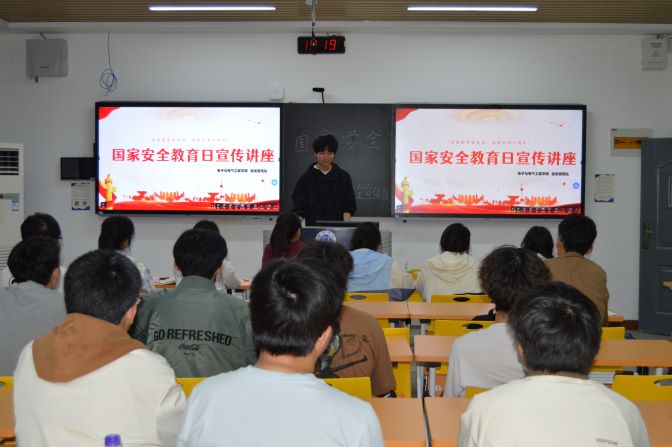 在第九个全民国家安全教育日来临之际,为增强学院学生国家安全意识,营造国家安全教育学习的浓厚氛围,进一步增强全民国家安全意识和素养。4月11日到15日,电子与电子工程学院安全宣传队逐班开展国家安全教育宣传活动。