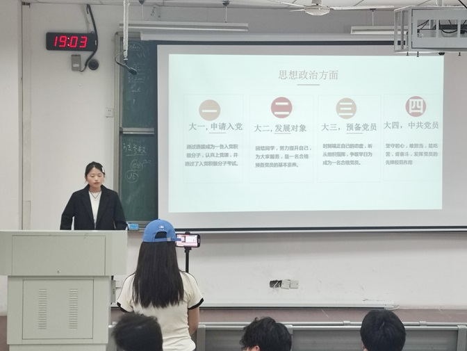 分享会伊始,电气工程学生党支部党员陶静率先发言,她从党员先锋模范的标准、引领青年风采以及共筑中国梦三个方面展开演讲。她提到,作为青年学生党员,应当积极发挥先锋模范作用,积极承担起引领青年风采、共筑中国梦的责任和使命。她向同学们详细规划了自己未来的努力方向和计划,要在学习生活上、本职工作上以及社会活动方面贡献出自己的力量。最后,她强调,身为新时代的青年,既要有学习知识的能力,更要有心系国家的胸怀。随后,电子信息专业学生党支部党员孙亚杰阐述了对于党员身份的认识及应承担的责任。首先,她重点强调了党员作为先锋模范的核心价值和重要意义。其次,她结合自身经验,分享了如何在日常学习、工作和社会服务中充分发挥党员先锋模范作用的具体举措。最后,她进一步阐明了这种模范作用在坚持党的领导、服务人民群众方面所发挥的重大作用。孙亚杰同学指出,作为一名学生党员,我们应当充分发挥表率作用,积极推动校园建设。紧接着,自动化类专业学生党支部党员彭友威发言,作为中共预备党员,她以自身实例出发,从学习、思想、工作和社会实践四个方向展开描述,在学习方面,她努力学习、毫不懈怠,无论是课堂成绩还是考试分数都名列前茅,对于各项等级考试也能顺利通过,在完善自我的同时也参加了各项组织活动和社会活动提升自己的实践能力。最后,电子信息专业学生党支部毕业生党员张桂乔同学回顾自己的大学四年,在思想政治方面,她始终以成为一名优秀党员而奋斗;在学习方面,不局限于学科知识的学习,也积极参加学科竞赛,从比赛中不断学习、探求新知;在生活及工作中,积极参加丰富的课余生活,通过志愿服务让她更加明白,身为一名共产党员的责任与义务。
