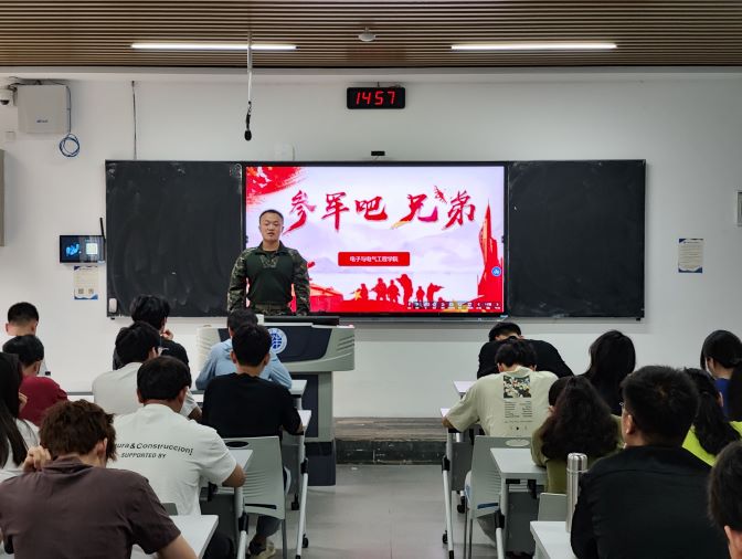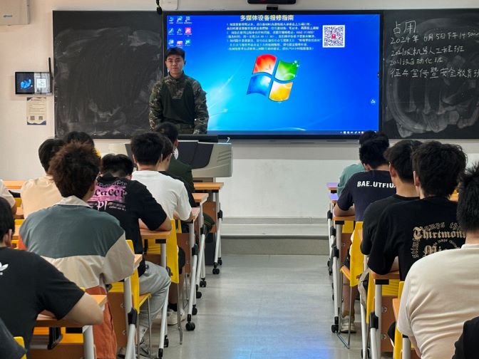 为全面贯彻落实国务院、中央军委征兵命令和全省征兵工作电视电话会议精神,进一步落实国家征兵工作相关要求,增强大学生的国防意识和参军入伍的热情,加强大学生参军入伍政策宣传的针对性,扩大征兵政策宣传的影响力和辐射面。6月5日,太阳成集团tyc7111分别在B309、B107教室面向我院2021级学生召开征兵动员宣讲会。宣讲会由学院征兵宣传队的3名退役复学学生主讲。