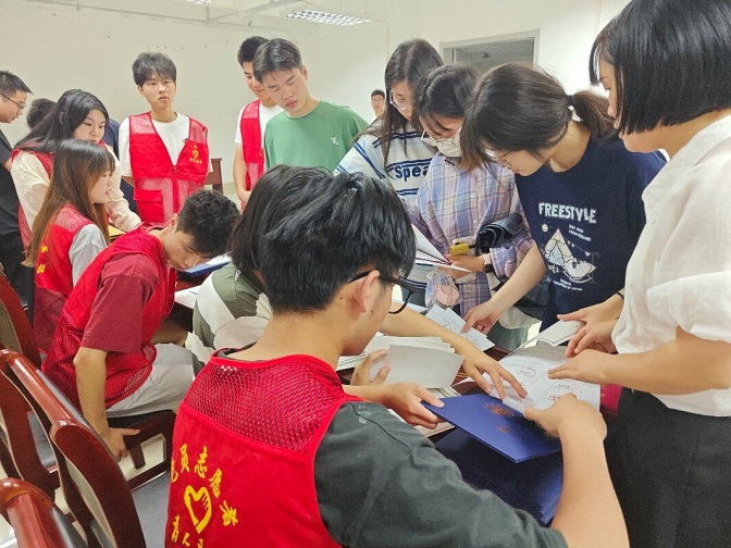 本次的志愿活动服务队由6名学生党员组成。在毕业生离校期间,该服务队在理工楼南308大厅设置离校手续办理点,帮毕业生快速办理离校手续、分发毕业证以及收取相关资料等一条龙服务,同时参与到离校手续办理点的会务准备、毕业礼物的发放等工作