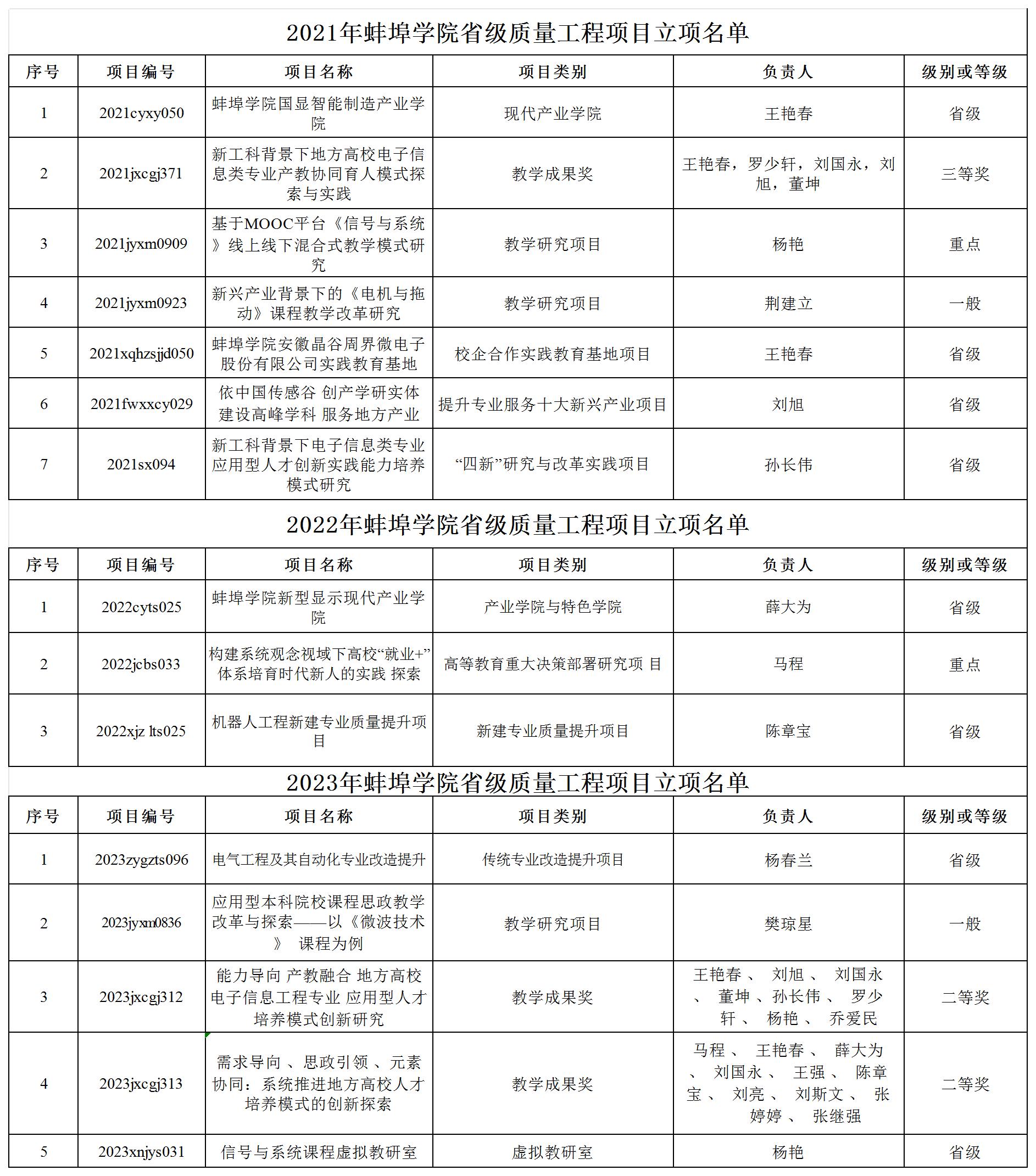 2021-2023年省级质量工程项目立项名单