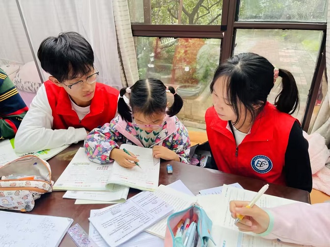 志愿者在为孩子们辅导功课的过程中,细致温柔、循序引导,耐心为孩子们讲解题目以及题目所蕴含的知识点,尽可能用孩子们容易理解的方法帮助他们答疑解惑,注意引导孩子们养成良好的学习习惯和一些适合的学习方法。除此之外,志愿者也在兴趣活动中与孩子们充分互动、寓教于乐,鼓励他们建立自信自立。志愿者还及时与家长沟通,反馈孩子的情况,加强双方的互信。学生家长表示:学院的爱心支教持续多年,不仅为孩子们传授课程知识,还引导他们树立正确的价值观,这份执着和奉献让大家深受感动。