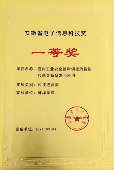 近日,安徽省电子学会对2024年安徽省电子信息科技奖的项目和科技工作者进行表彰奖励。由我校为第一完成单位、太阳成集团tyc7111完成的“面向工业安全检测领域的智能传感装备研究与应用”项目,荣获安徽省电子信息科技进步奖一等奖。