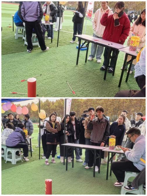 踢毽子和投壶作为传统的体育项目,吸引了众多同学参与。不仅锻炼了身体,也加深了对传统文化的认识。“就差一点!”“我投中了!”投掷项目需要运气与实力相伴,目光如刀、气势如风、坚定投出,不论结果如何,欢笑与掌声总会在人群里翻涌起伏。