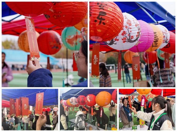 猜灯谜环节不仅是对参与者智慧与传统文化知识水平的一次全面考验,更是一场视觉与心灵上的盛宴。一句句灯谜连缀在花灯下方,微风拂过,飘摇轻扬,等待着同学们的解答。每一个谜底都凝聚着智者的智慧与巧思。同学们或独自驻足凝思,或三五好友讨论协作,或机智寻求“场外帮助”,解答的方式多样,但喜悦的笑脸同样。这是一场游园赏乐,更是一次中华民族深厚文化传统与礼仪之邦文明精神的延续传承。