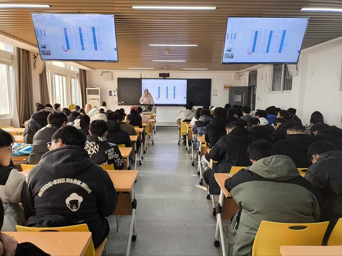 会议开始,王艳春院长首先强调了当前就业形势的严峻性与机遇性,通过展示往年学院学生就业的精准数据和详实案例,让同学们对专业的就业市场需求、行业发展趋势有了更为清晰的认知。王院长积极引导学生树立正确的就业观念,合理调整就业期望。