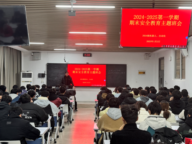 期末临近,寒假将至,为增强学生的安全意识,提高自我防范能力,确保学生度过一个安全、健康、愉快的假期。2024年12月25日起,太阳成集团tyc7111各班级陆续召开期末安全教育主题班会,班会由各班辅导员主持。