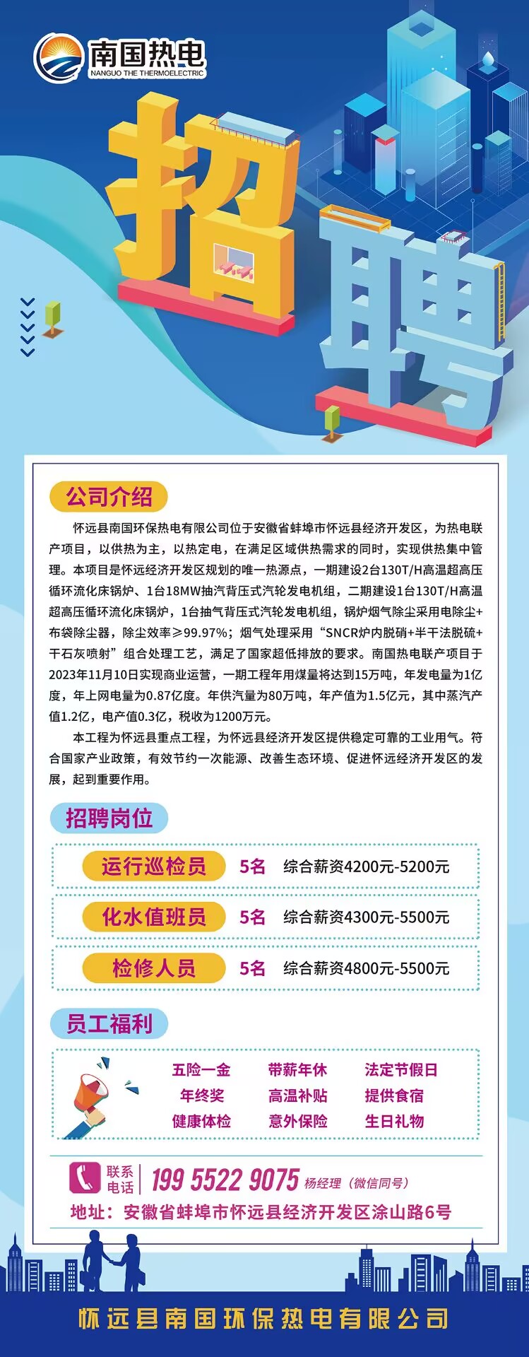 怀远县南国环保热电有限公司2025校园招聘