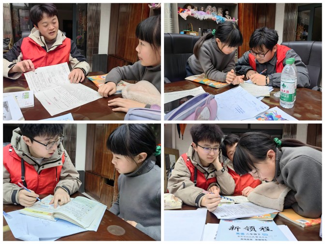 活动期间,志愿者们全情投入。在数学辅导环节,志愿者们针对复杂的应用题和难解的方程式,通过绘制图表、列举实例等方式,将抽象的数学知识转化为孩子易于理解的形式。遇到难题,志愿者们会耐心地启发:“我们想想看,能不能把这个问题拆分成几个小问题来解决呢?”引导孩子逐步找到解题思路。志愿者还帮助孩子复习知识点并加以巩固。在语文辅导时,志愿者耐心解读词汇深意,剖析复杂句式,引导孩子们体会文字魅力并帮助孩子完成周末的语文作文作业。