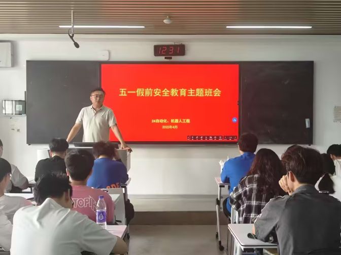 为切实做好学生假期安全教育与学业发展规划指导,助力学生度过平安假期,明确成长方向。2025年4月27日,2024级自动化、机器人班级在C201召开主题班会,本次班会围绕“安全为先筑防线,竞赛赋能促成长”主题展开。2022级优秀学长张秦参会,班会由辅导员张继强主持。