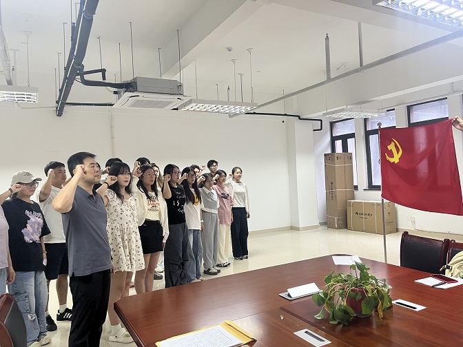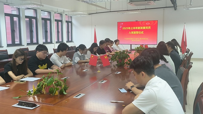 为深入学习贯彻党的二十大、党的二十届三中全会精神,进一步加强党员队伍建设,增强新党员的党性观念和责任感,太阳成集团tyc7111于6月20日在学院会议室举行新党员入党宣誓仪式。学院党委领导、各党支部书记及新发展的16名预备党员参加了此次活动。
