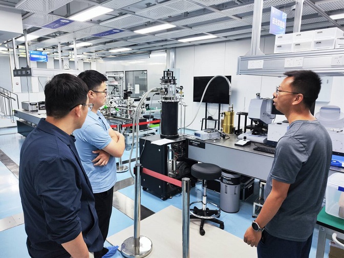 随后,在陈学刚的带领下,智能感知中心博士教师实地参观了强光磁科学中心强磁场下超快光谱实验站、物质科学与信息技术研究院微纳米器件研究等实验室,详细了解了相关实验设备的工作原理、技术参数和应用场景等信息。参观过程中,双方研究人员就各自研究领域的前沿技术、关键科学问题及潜在合作方向展开了进一步的交流和探讨。