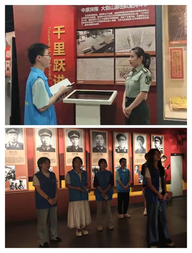 实践团成员在陵园讲解员朱老师的专业讲解下,系统参观了“一塔一馆”核心教育区(烈士纪念塔、革命事迹陈列馆)。在高达16米的烈士纪念塔前,全体成员举行庄严的缅怀仪式,深切感悟“革命理想高于天”的精神伟力。革命事迹陈列馆以皖西的革命史、著名烈士事迹和108位开国将军事迹等为主要内容,包括“辉煌历史”“浩气长存”“将军摇篮”三个板块,成员们深刻认识到红色江山来之不易,更加坚定了“把青春献给祖国”的理想信念。