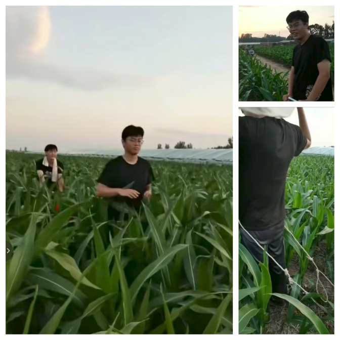 团队成员谢浩、李泓毅以农业志愿者身份深入农村生产一线,开展了为期半月的农业实践与服务。谢浩同学跟随农户学习玉米田间管理技术,掌握除草、培土等关键环节,并在智慧农业大棚中操作土壤墒情监测设备,通过手机APP远程调控温湿度与光照,切实体验到科技对农业现代化的推动力量。李泓毅同学则直接参与播种、除草、采收等全流程农事操作,并在农闲期间协助整理农田环境,减轻农户劳动负担。
