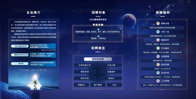 COC封装工程师 | 本科 | 机械、自动化、光学、电子信息、通信、智能智造等专业 |